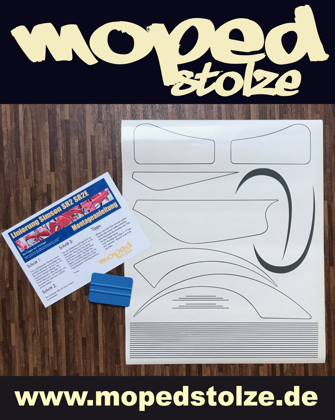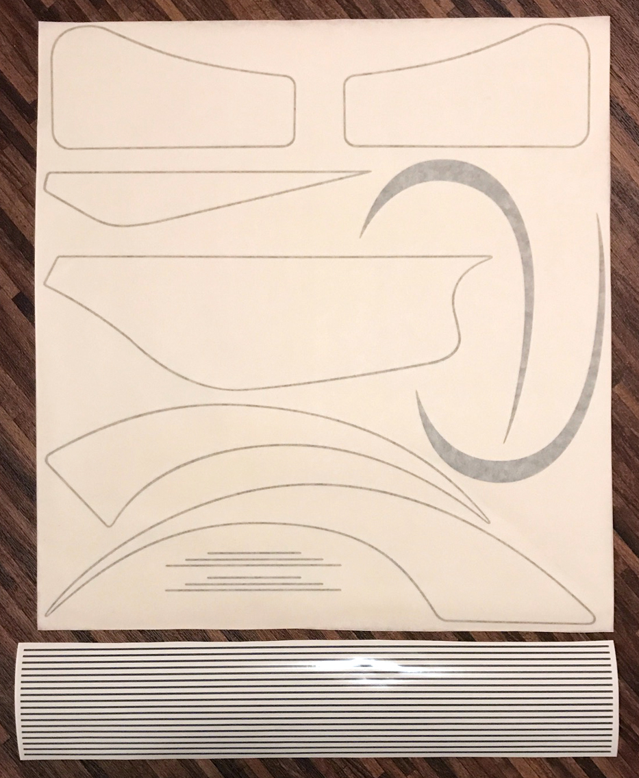 Komplett-Set mit allen computergeschnittenen Linien für Tank, Kotflügel, Federabdeckkasten, Kettenschutz, Werkzeugkasten und Felgen